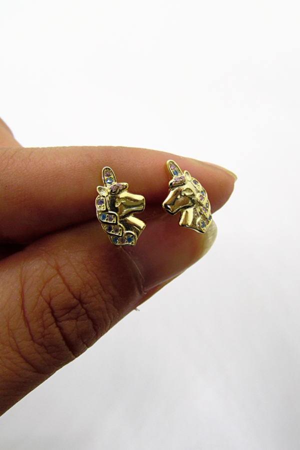 arito pasante de unicornio de plata 925 bañado en oro