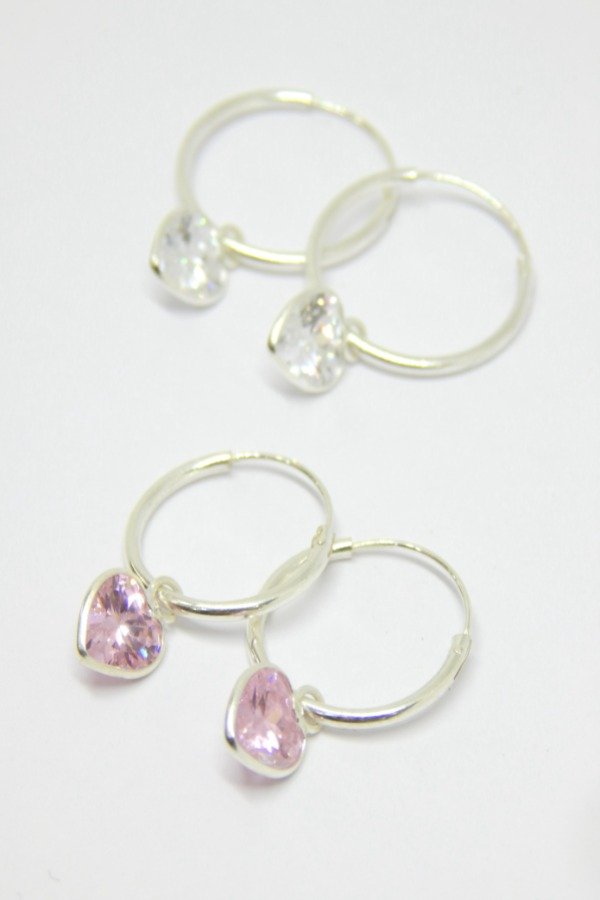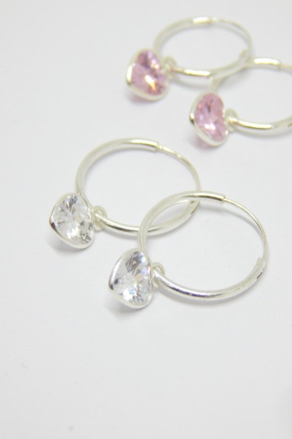 Argollitas de plata 925 con dije de cristal engarzsado. Posibilidad de usarlas con los dijes o sin