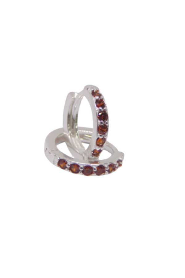 Argollitas cubanas con citrino sintetico de 11mm. Plata 925