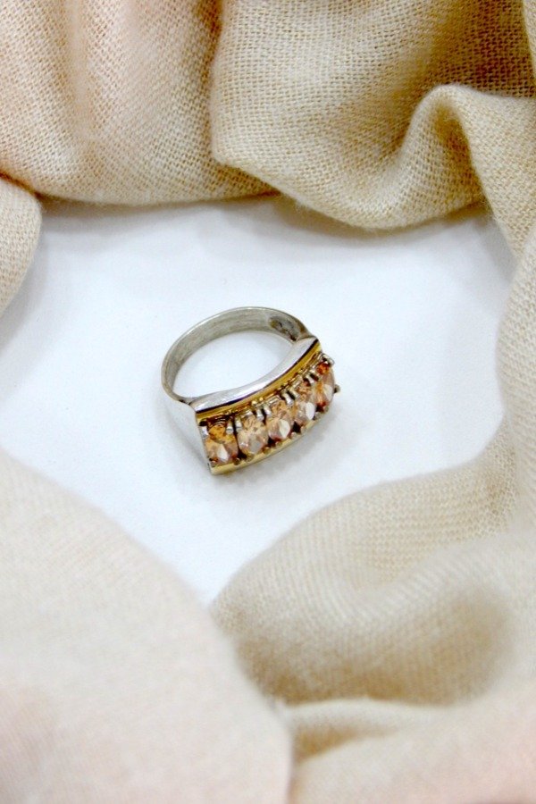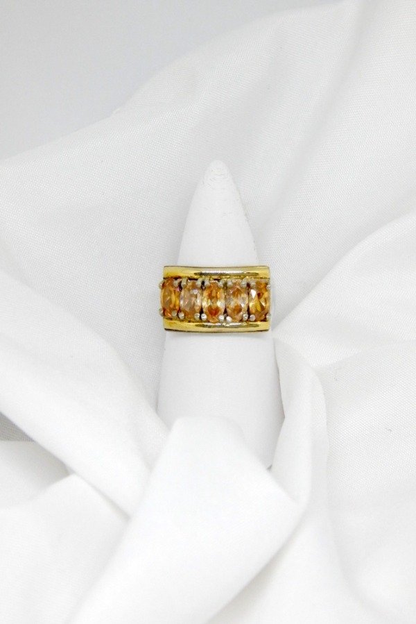 Anillo de plata 925 combinado con oro dublé piedras sintéticas ovaladas