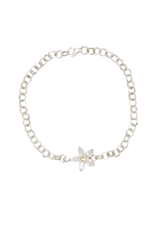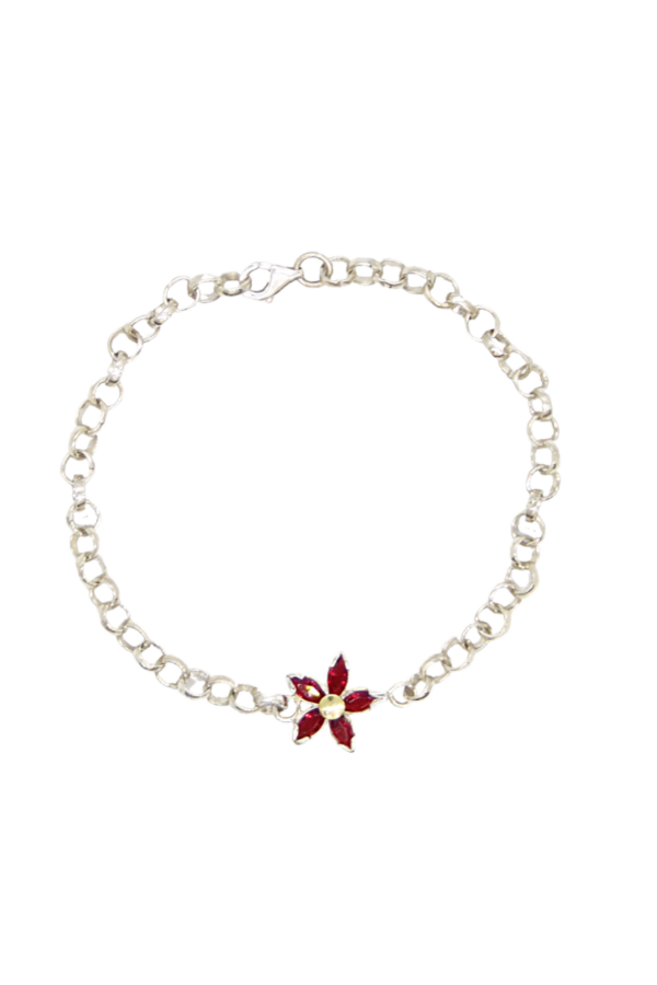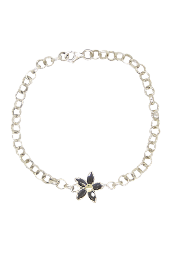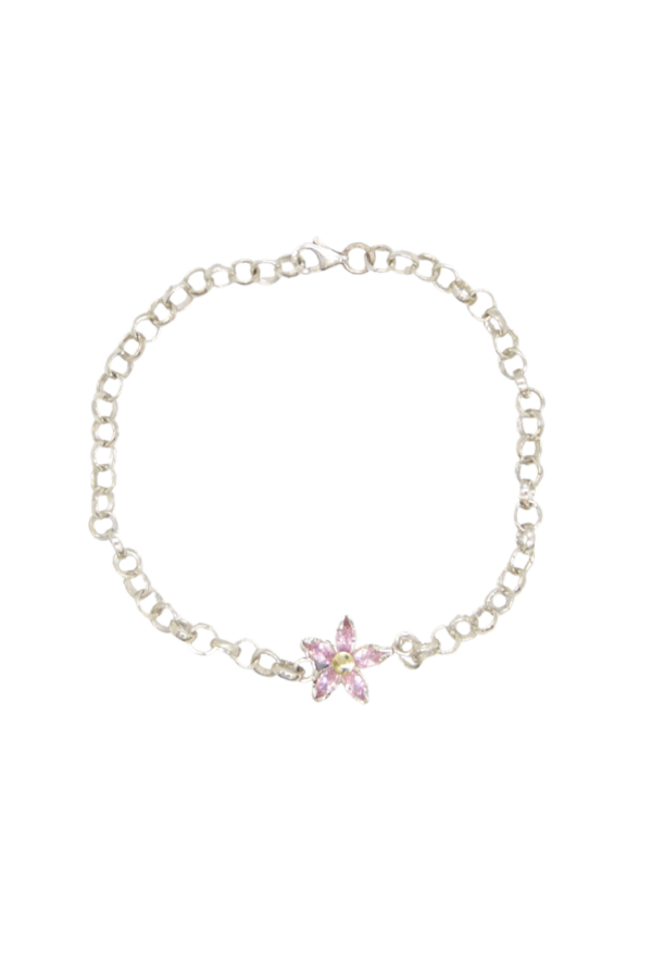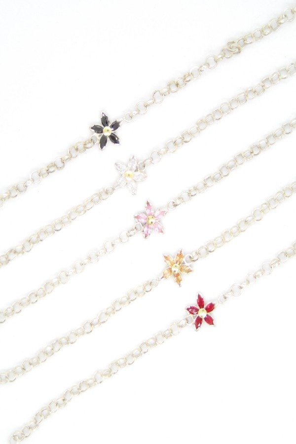 Pulsera Roló con margarita de Cristal de distintos colores, confeccionada en Plata 925 con pequeño centro de oro